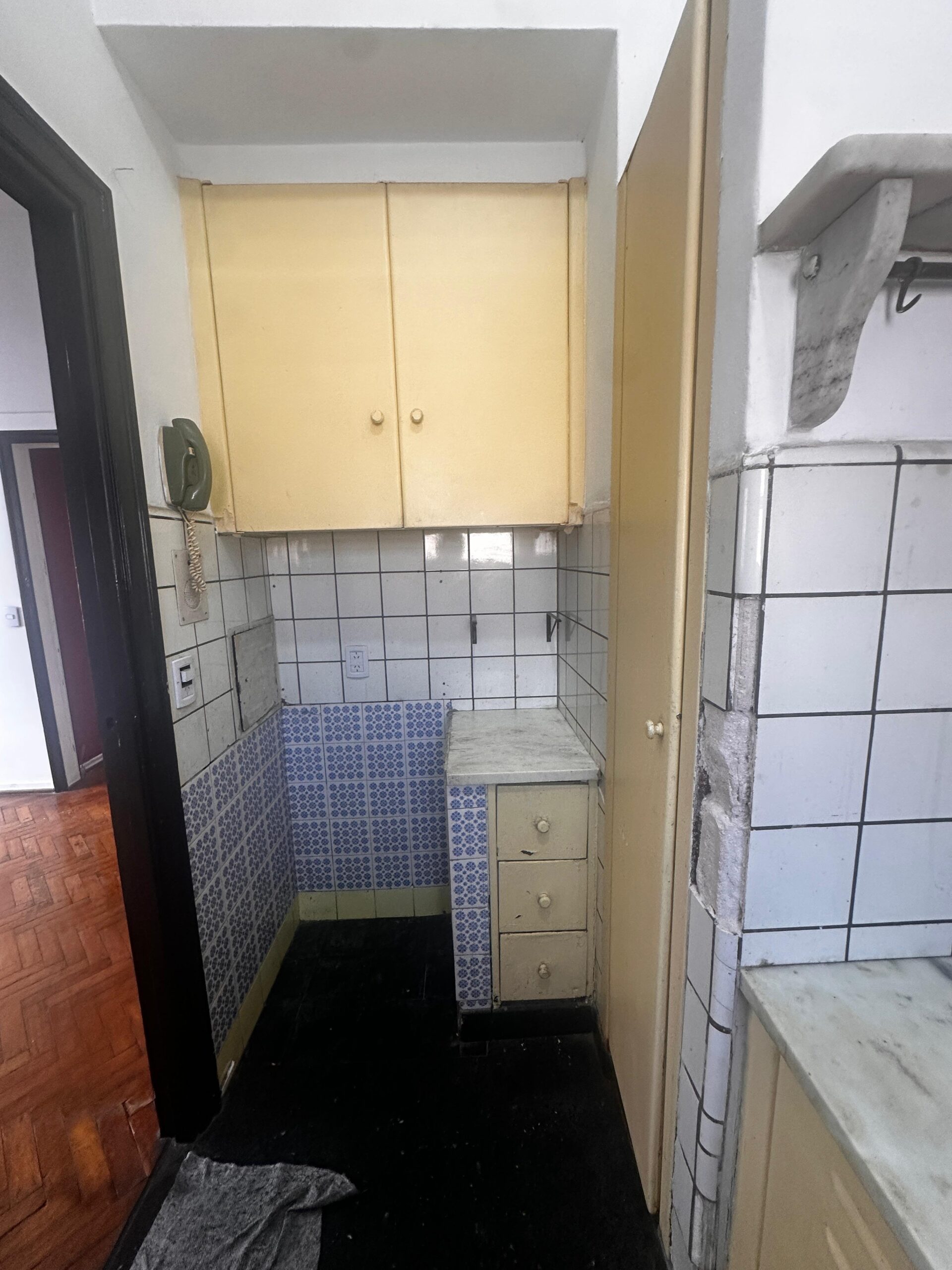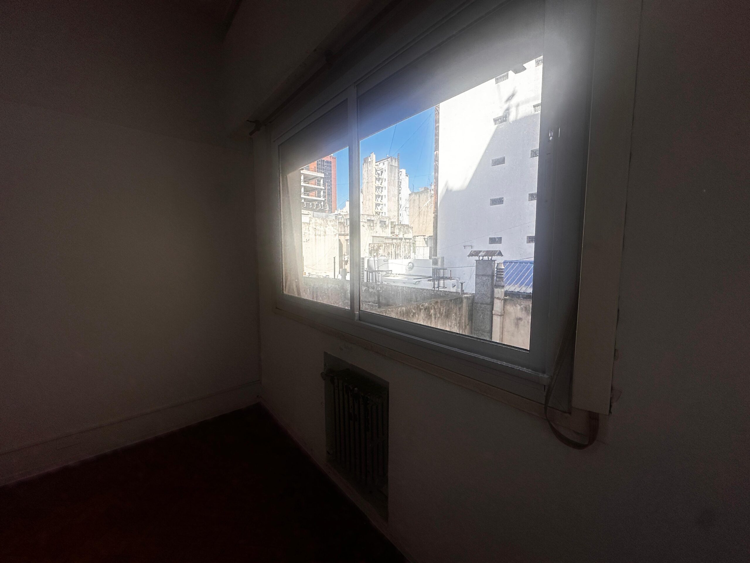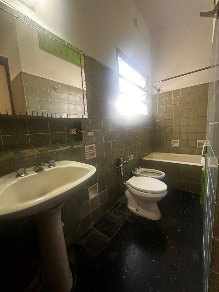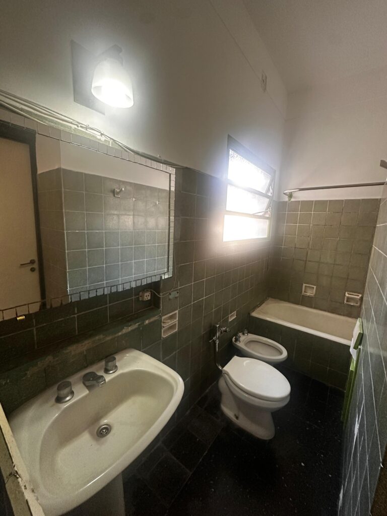 El dormitorio es independiente y posee placard integrado, brindando buen espacio de guardado. La cocina es a gas y equipada con calefón, manteniendo el carácter funcional del departamento.